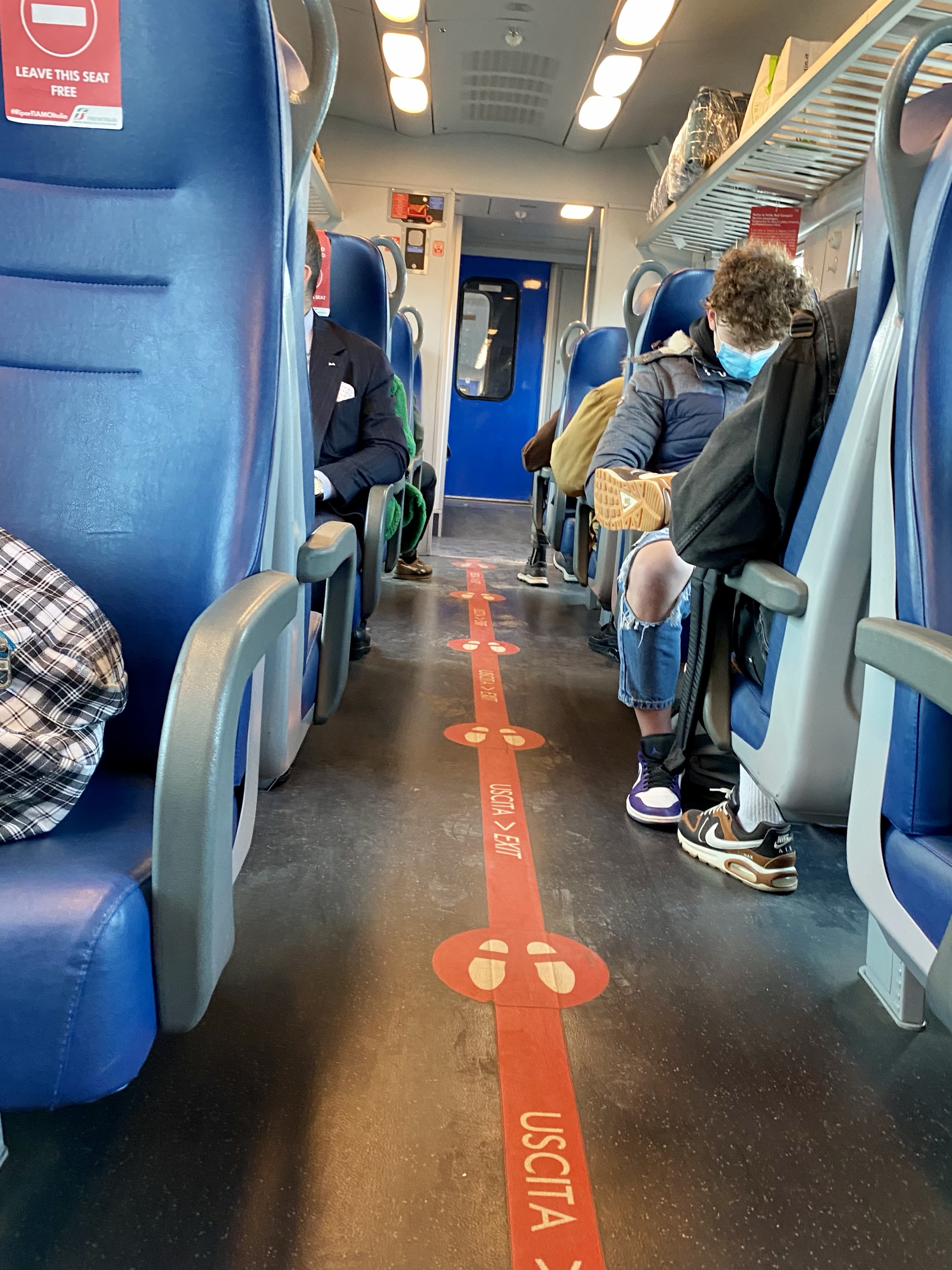Abbiamo preso il treno per arrivare qui. Ognuno seduto al suo posto, distanti, impossibilitati anche a conversare. Una volta il treno era il posto ideale per conoscere altre persone, passare il tempo a chiacchierare. Ora, la maggior parte di noi, seduta al proprio posto, si perde in un mondo virtuale e diventa incurante di tutto ciò che accade attorno. Ma che ci è successo? Perché lo permettiamo?